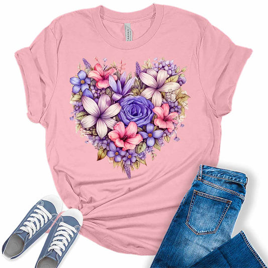 Heart Shirt for Women Cute Floral Spring T Shirt Trendy Plus Size Summer Graphic Tees