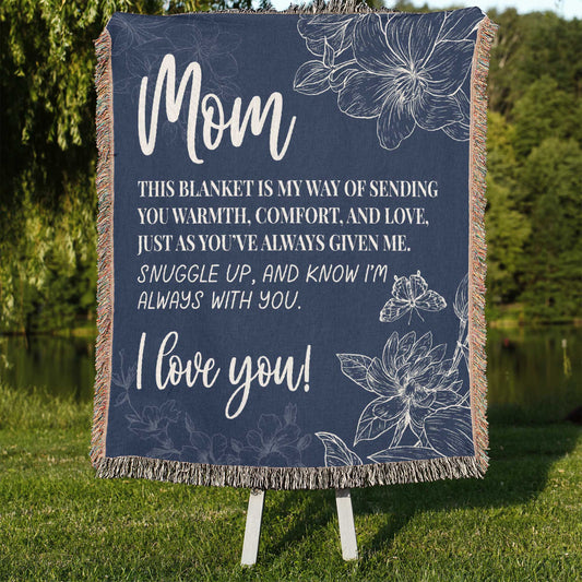 Mom Love You Floral Gift for Mother's Day Gift Woven Blanket - Ships Free