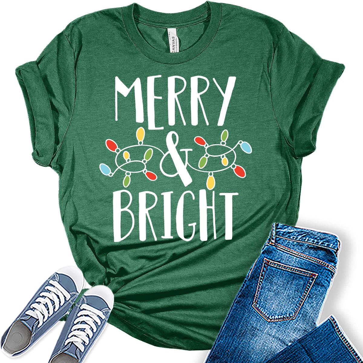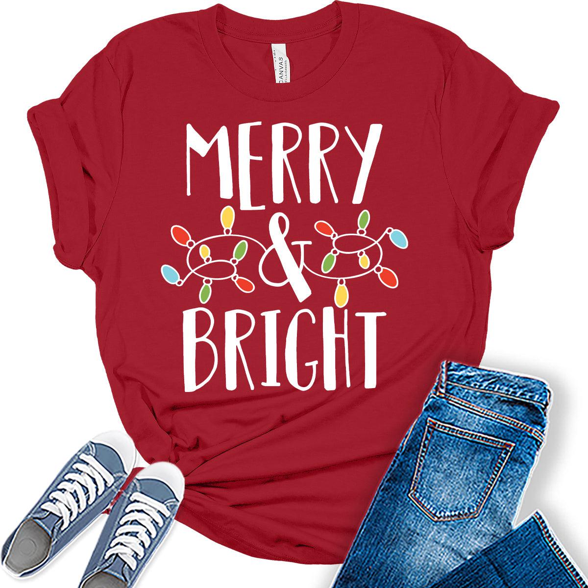 Merry and Bright Christmas Shirts for Women Holiday Xmas Graphic Tees