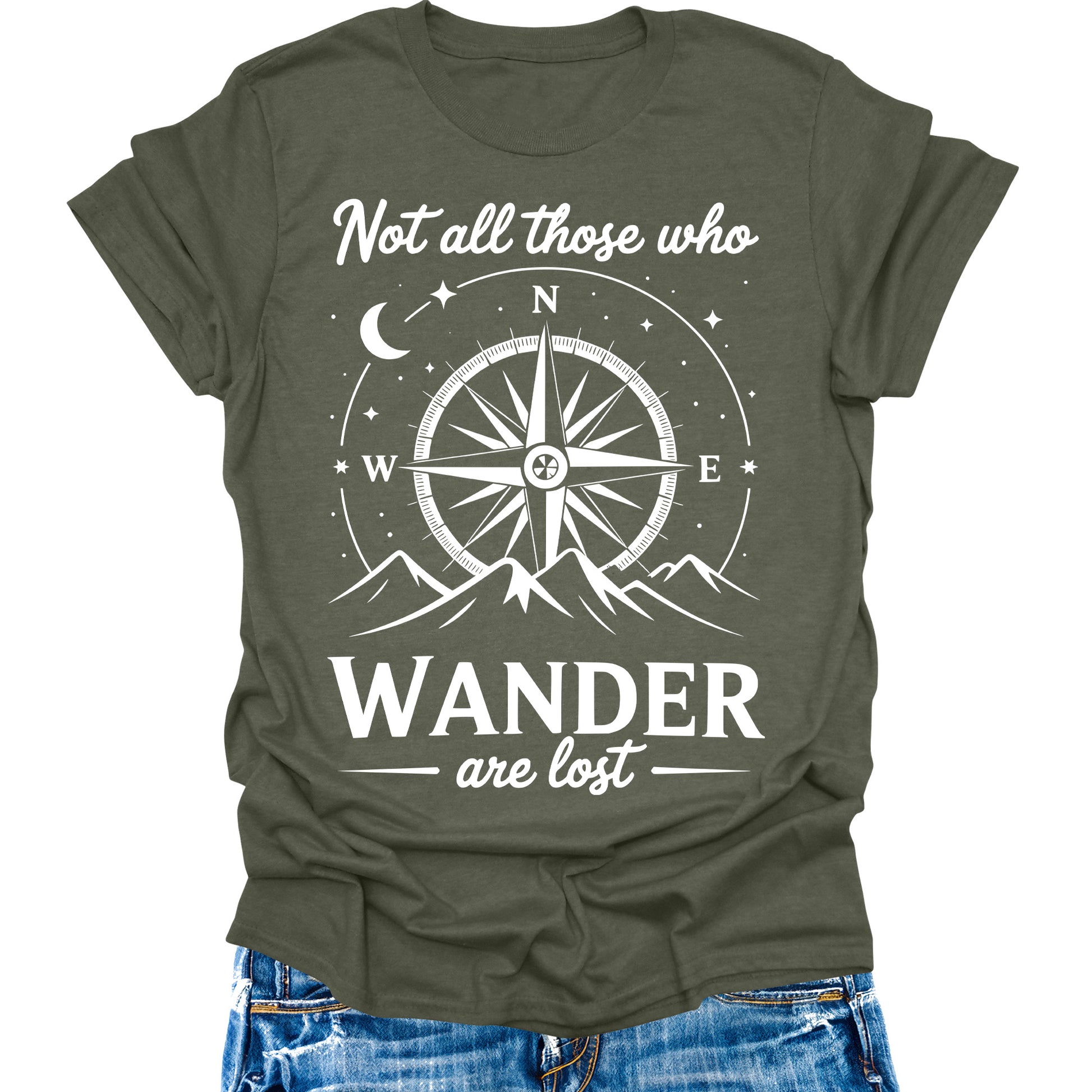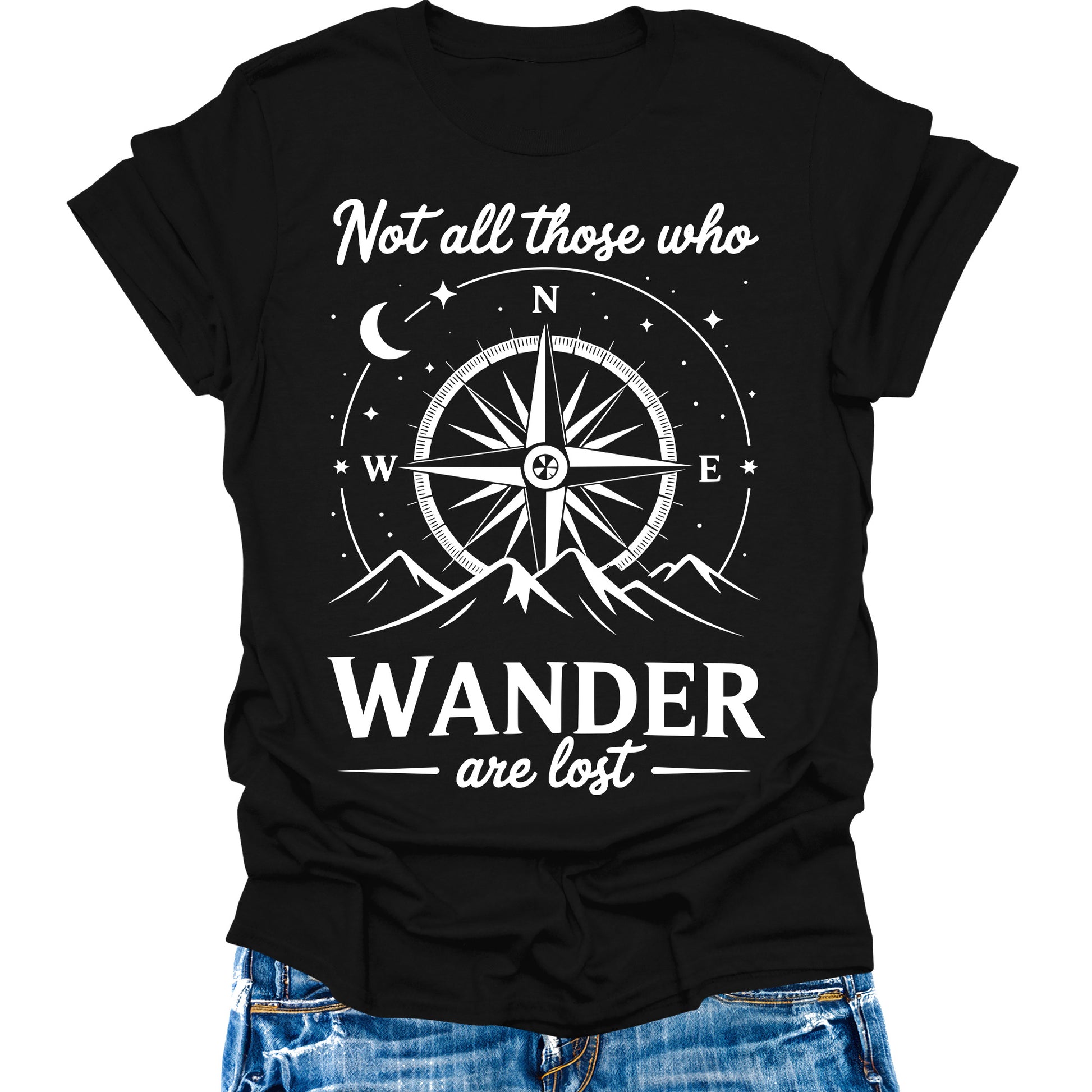 Not All Those Who Wander Are Lost Shirt Camping Hiking Tops Short Sleeve Womens Graphic Tees