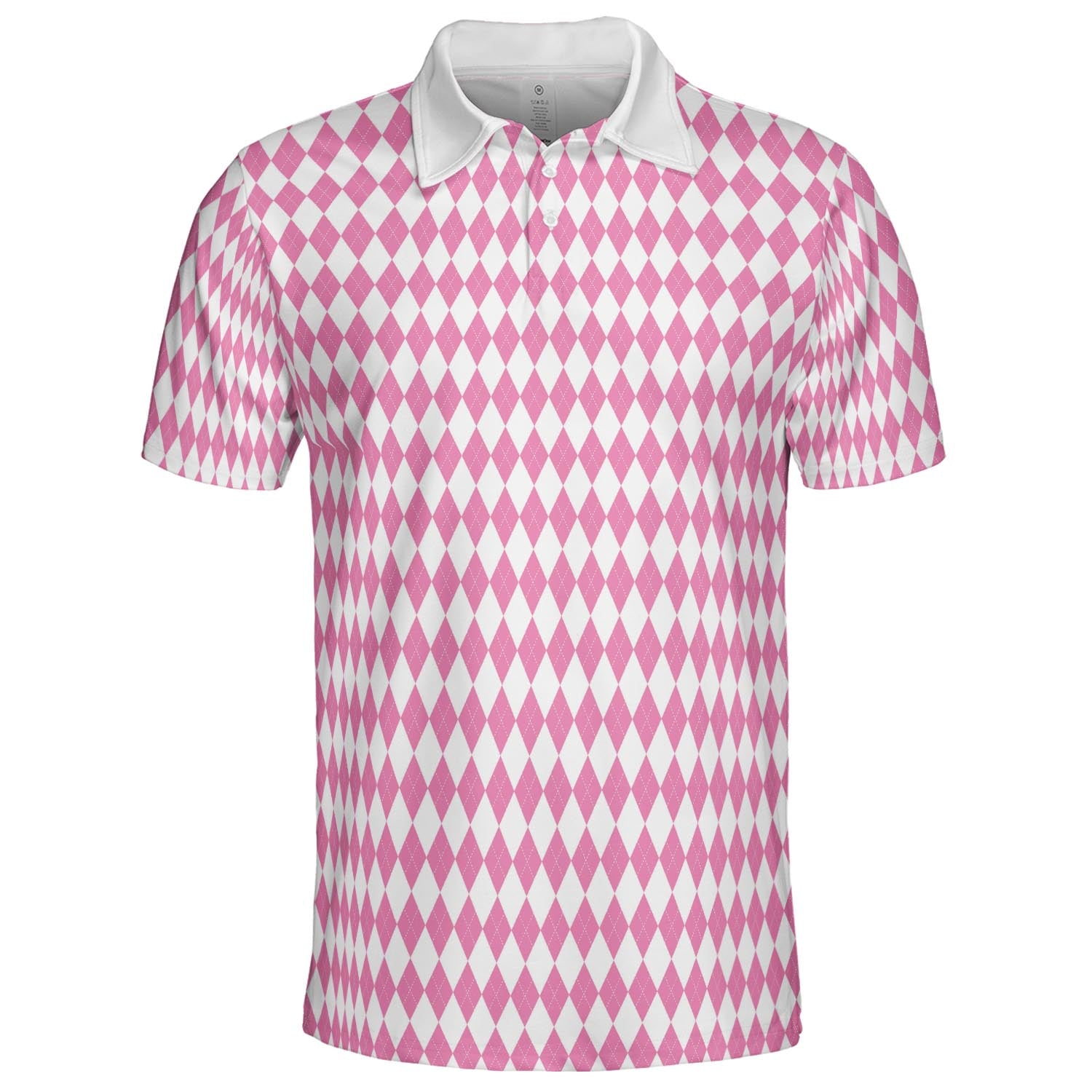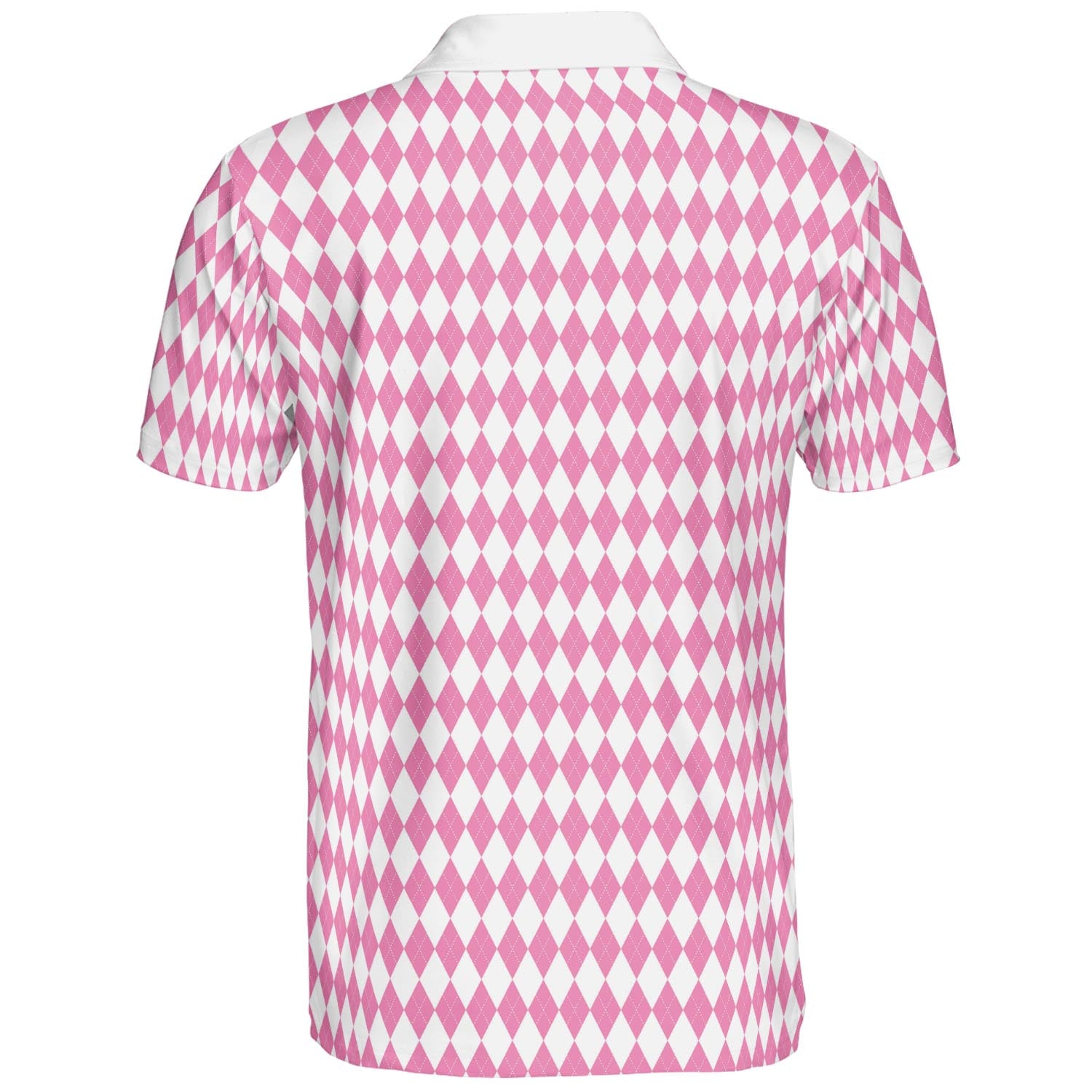 Bavarian Diamond Polo Shirt for Men Pink White Checkered Moisture Wicking Short Sleeve Golf Top