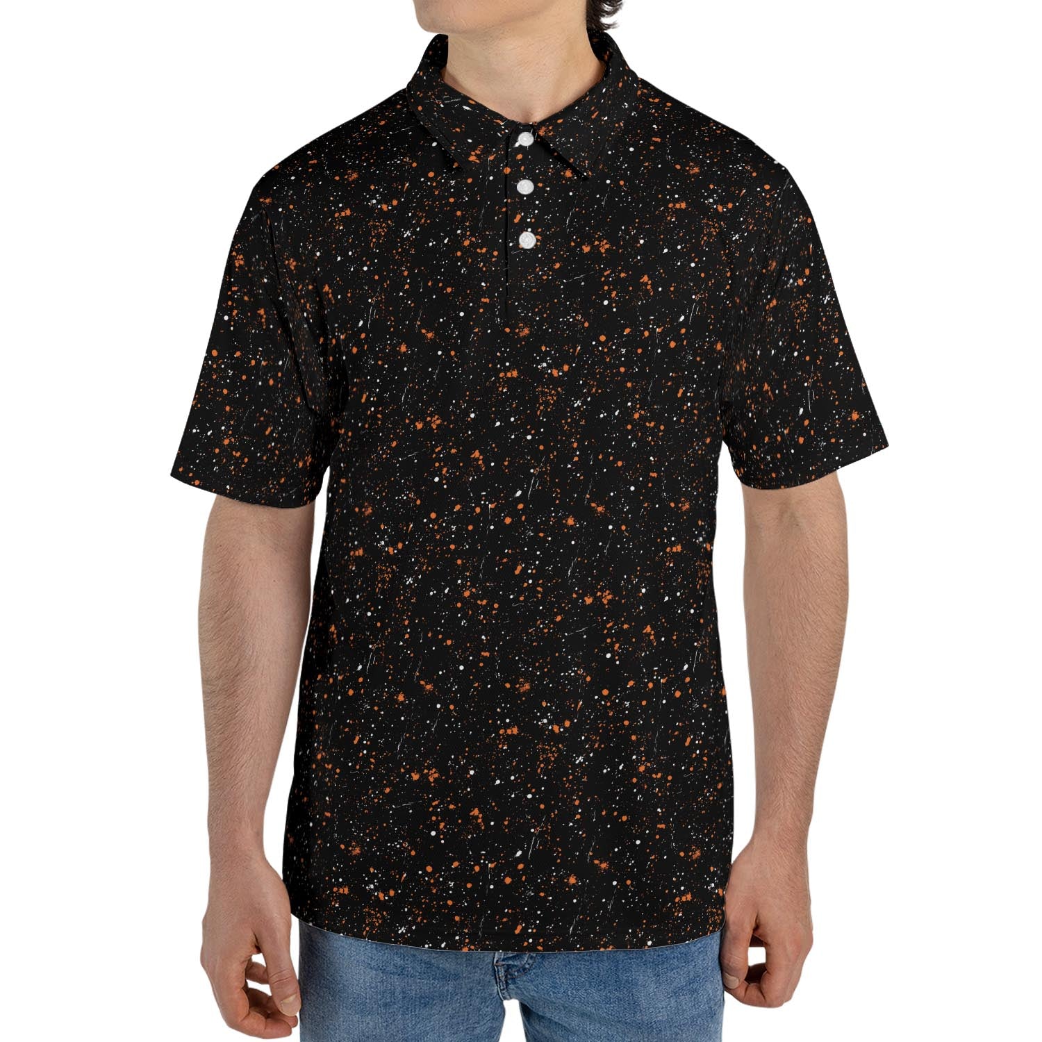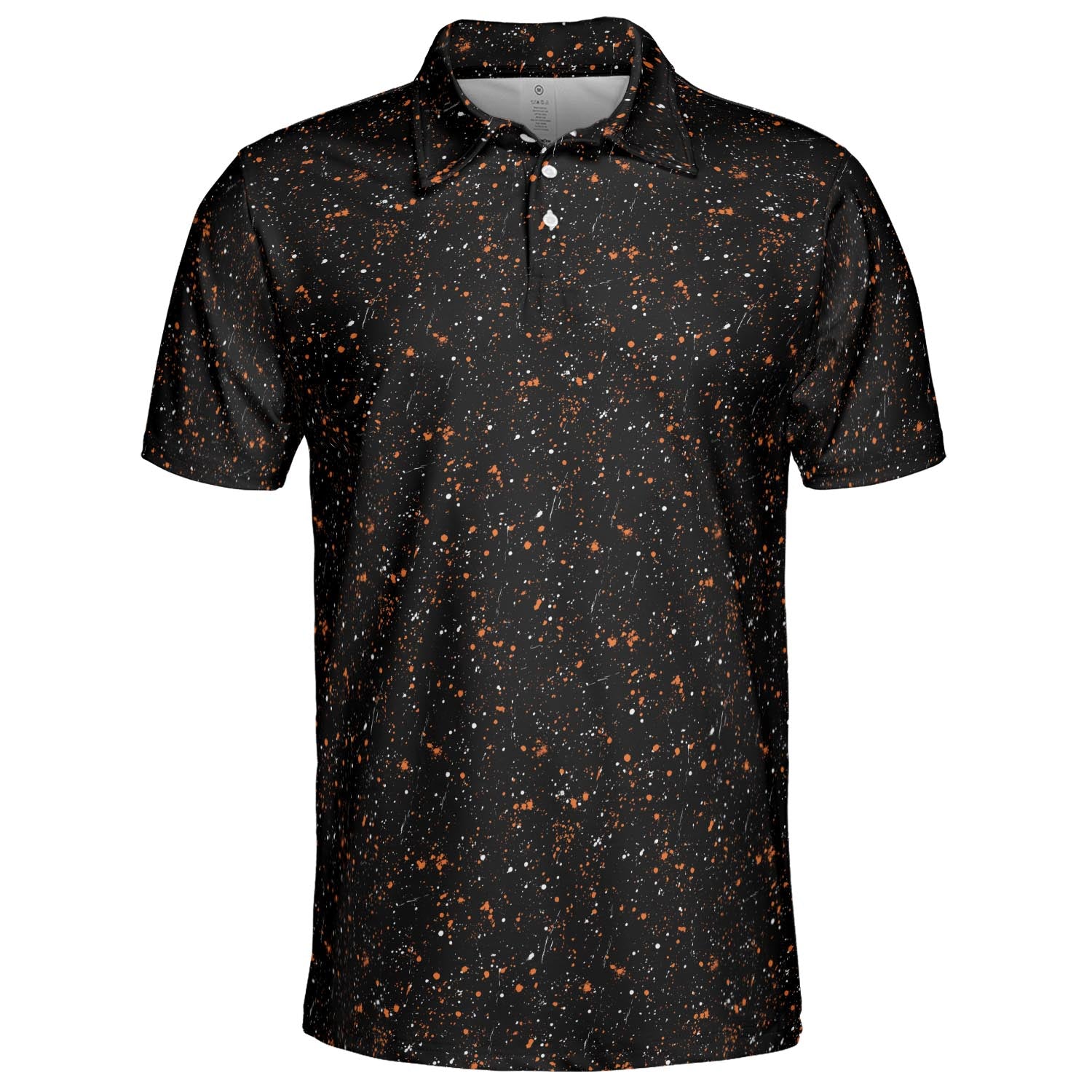 Black Halloween Polo Shirt for Men Spooky Orange Moisture Wicking Short Sleeve Golf Costume Party Top