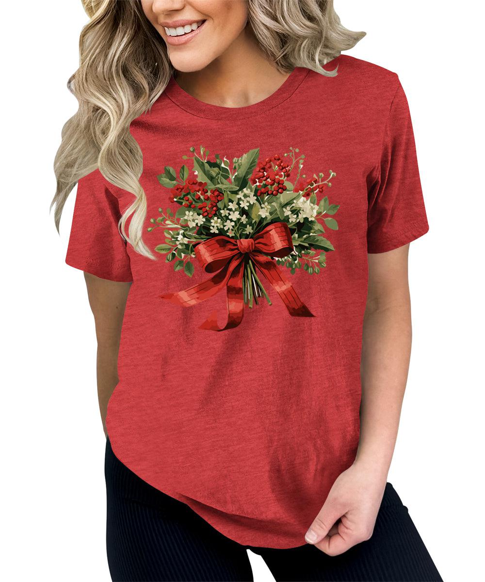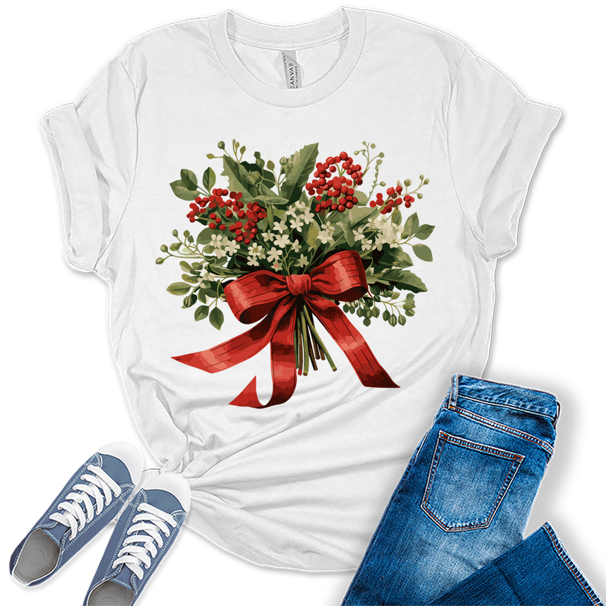 Christmas Shirt for Women Holly Graphic Tees Cute Floral Tops