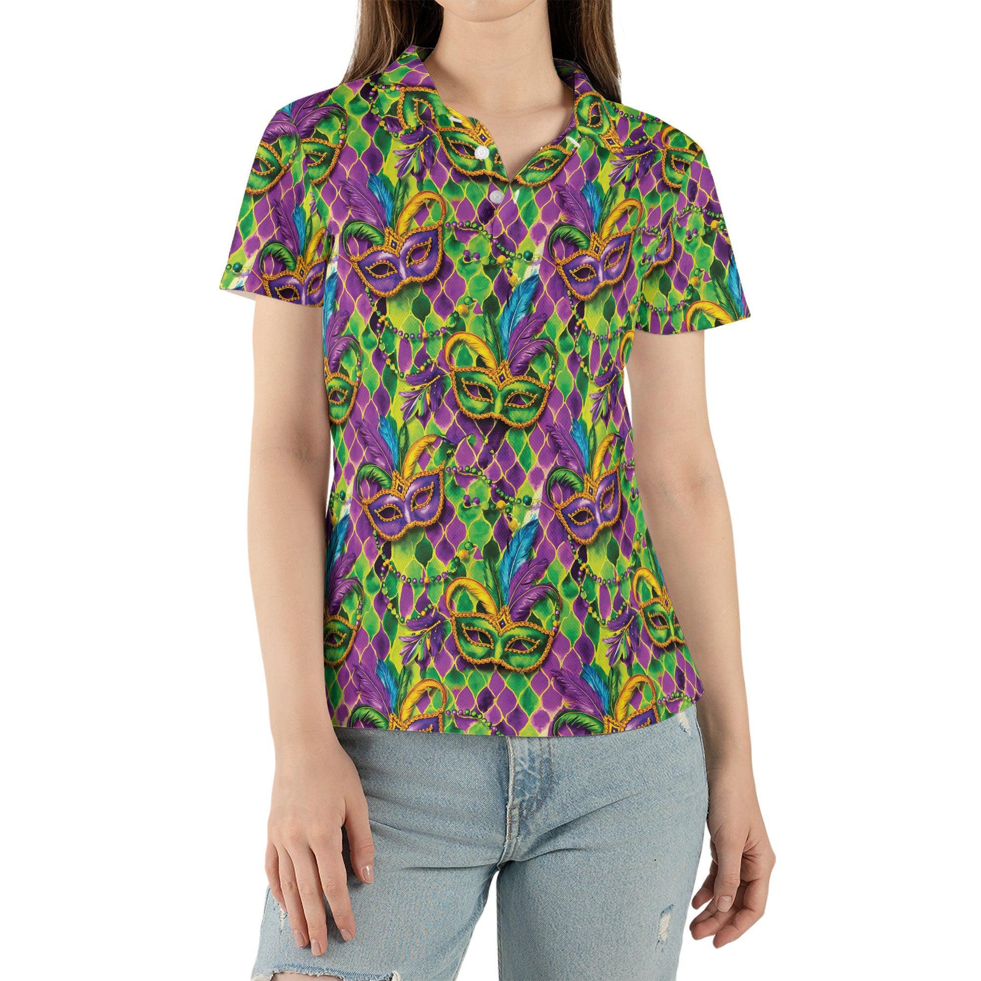 Mardi Gras Polo Shirts for Women Party Mask Shirt Moisture Wicking Short Sleeve Golf Shirt