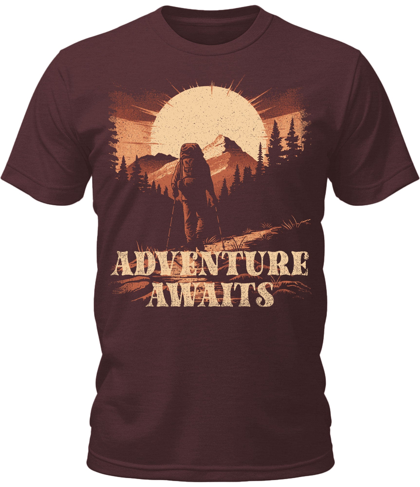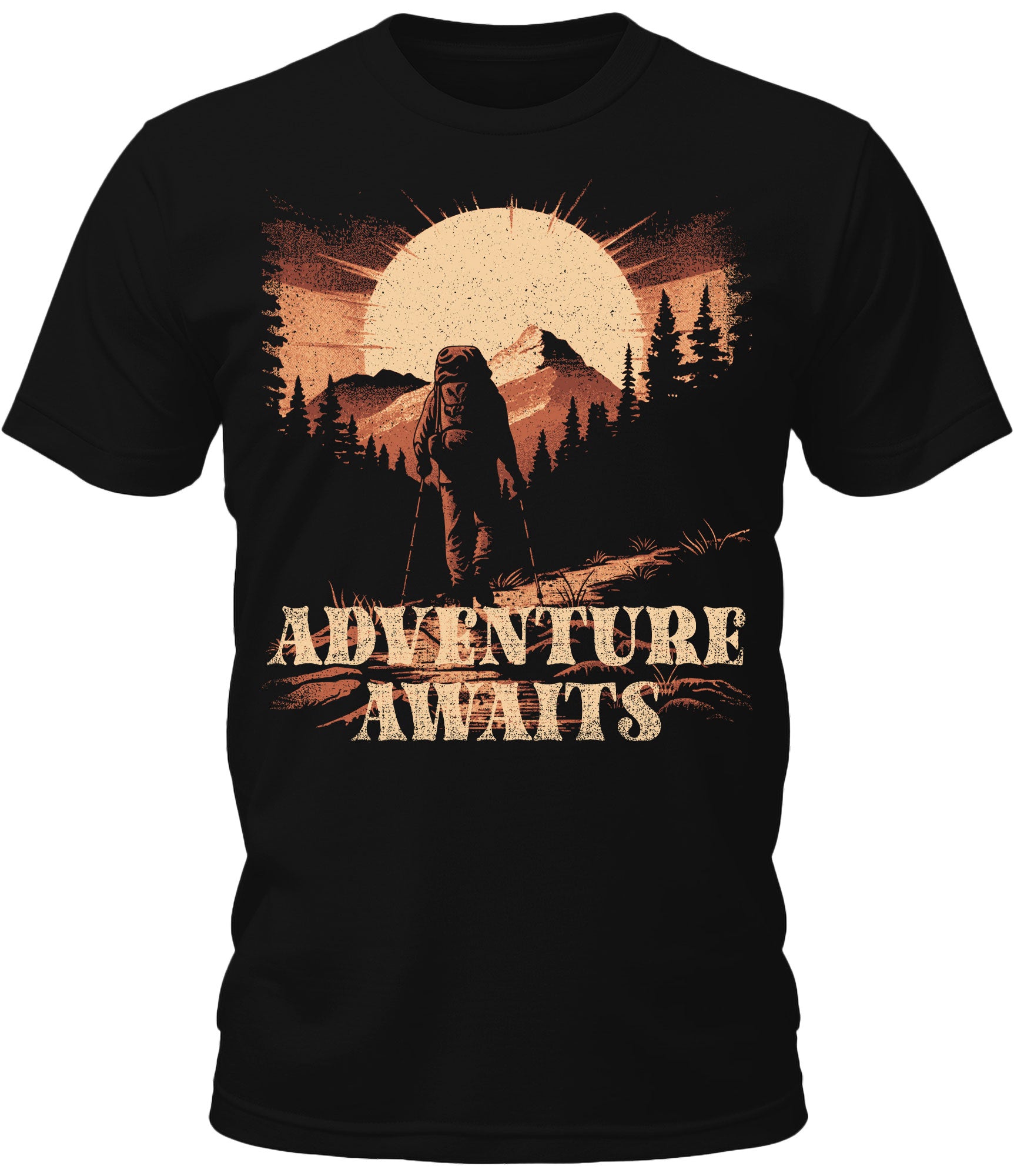 Mens Adventure Awaits Hiking Camping Graphic Tee Cool Premium Tshirt