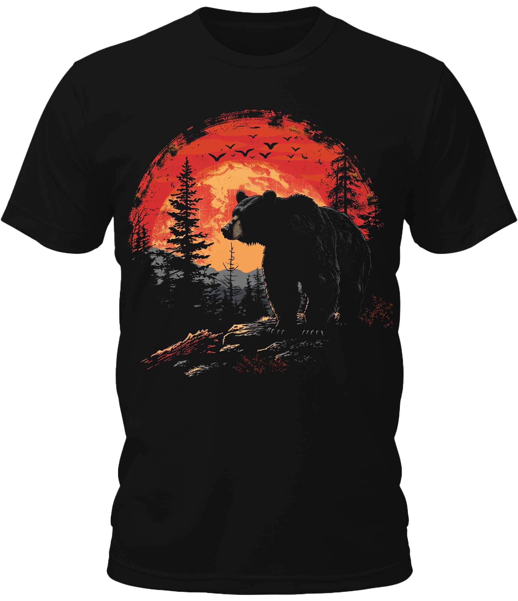 Mens Forest Sunset Bear Wild Hiking Graphic Tee Cool Premium Tshirt