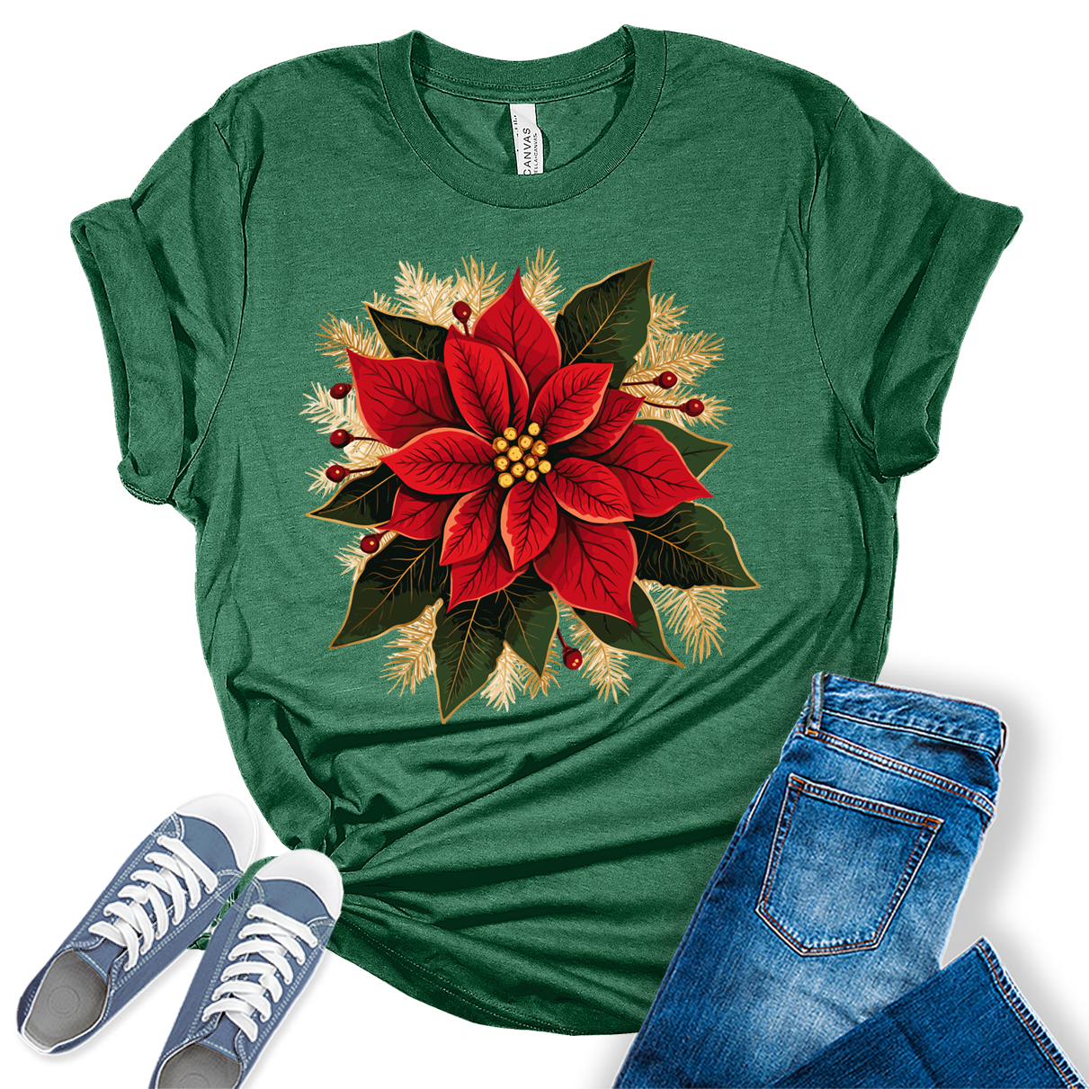 Christmas Shirts for Women Poinsettias Flower Graphic Tees Holiday Xmas Tshirts