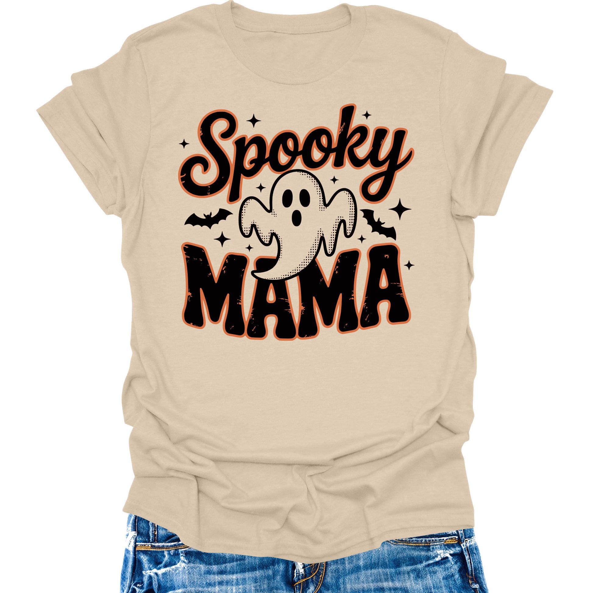 Spooky Mama T-Shirt Halloween Ghost Shirts Women's Fall Cute Graphic Tees