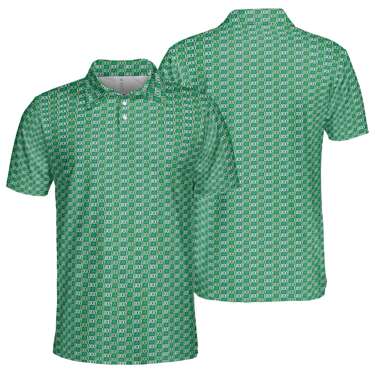 St Patricks Day Polo Shirts for Men Lucky Shamrock Letter Print Moisture Wicking Short Sleeve Golf Top