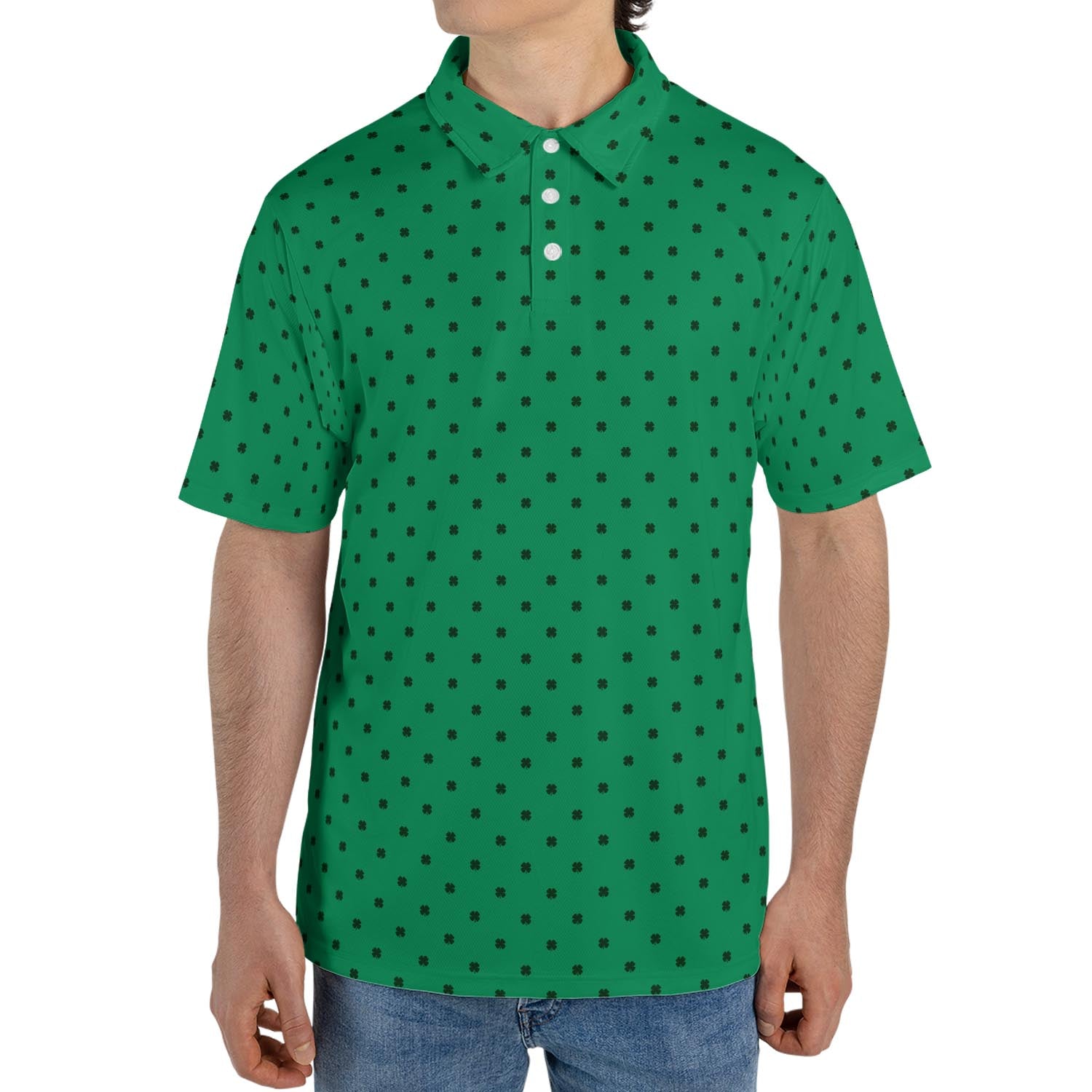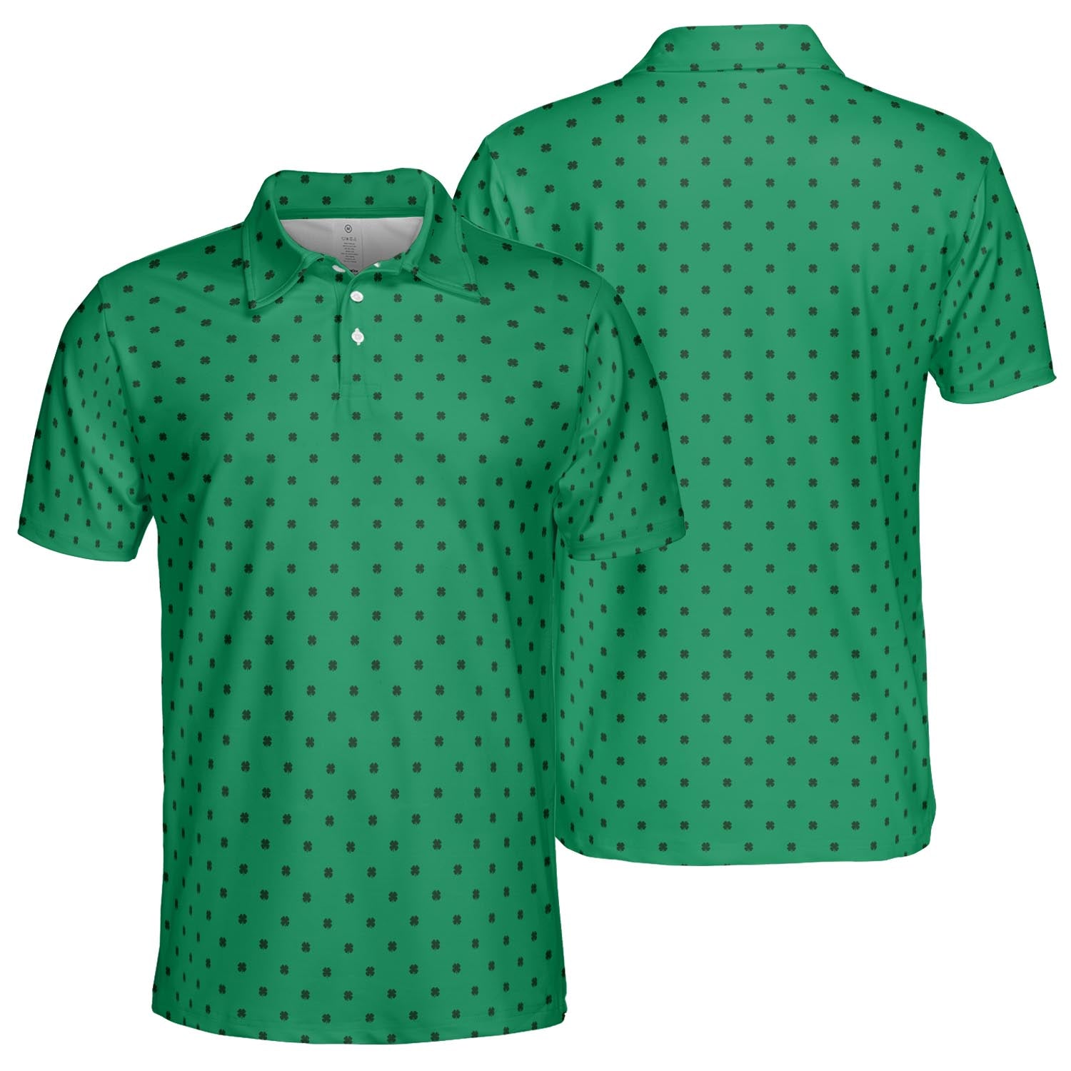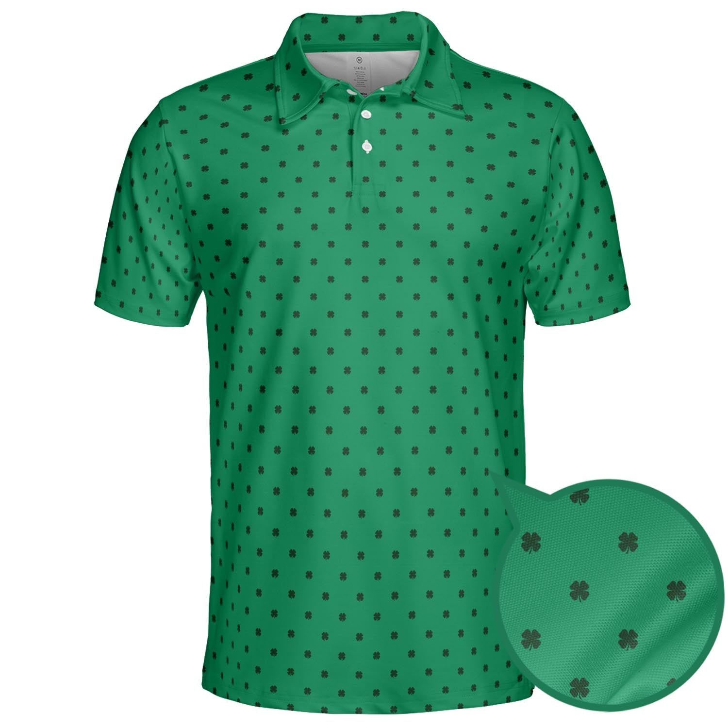 St Patricks Day Polo Shirts for Men Shamrock Print Moisture Wicking Short Sleeve Golf Top