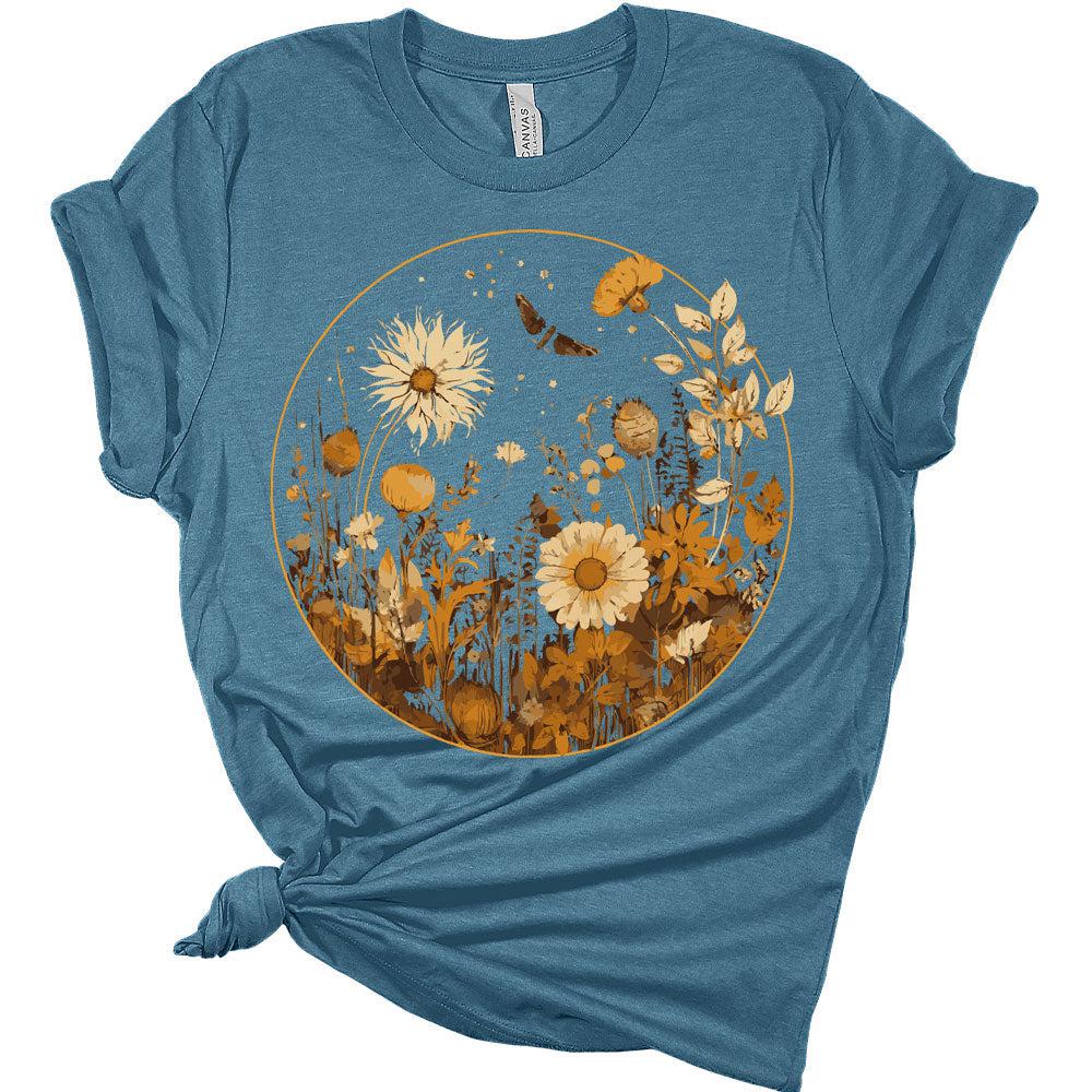 Wildflower Tshirt for Women Vintage Plant Graphic Tees Sunflower Grow Positive Thoughts Shirt Girls Short Sleeve Casual Tee