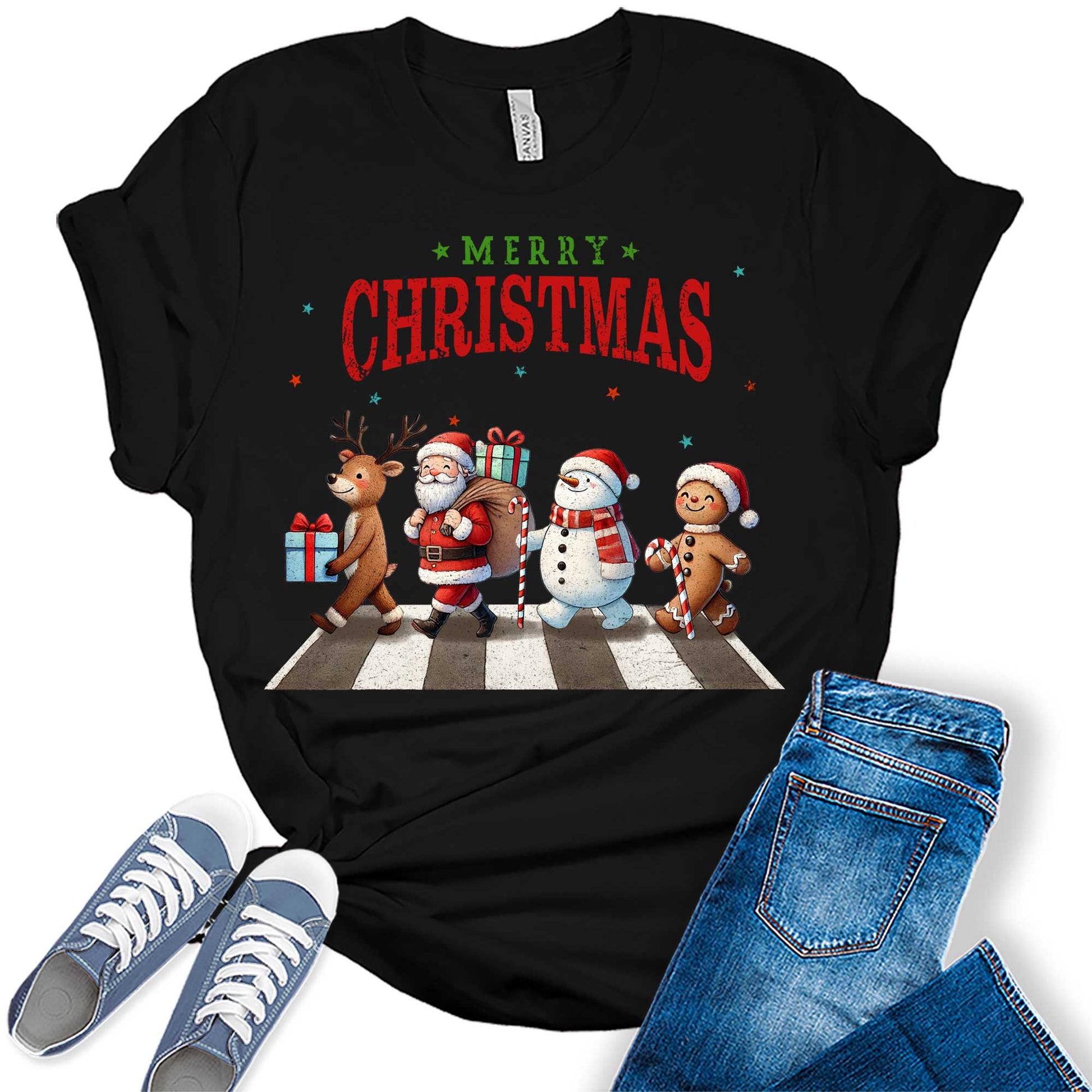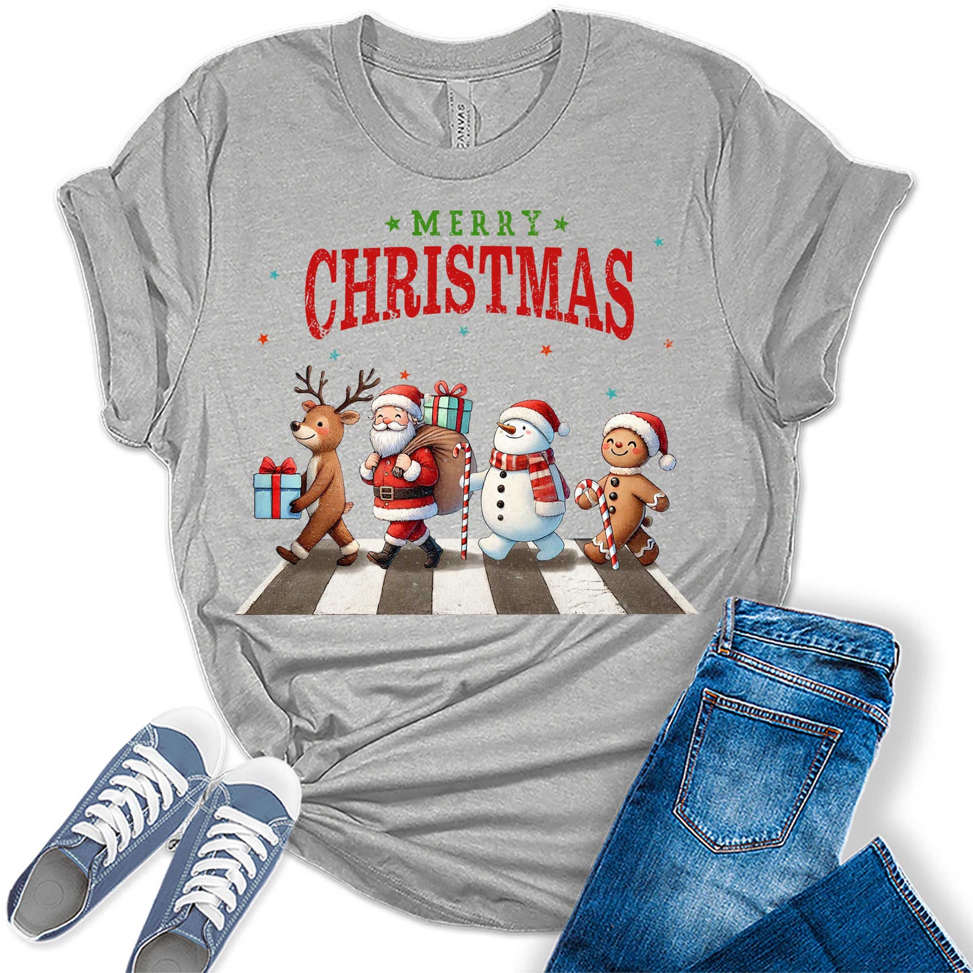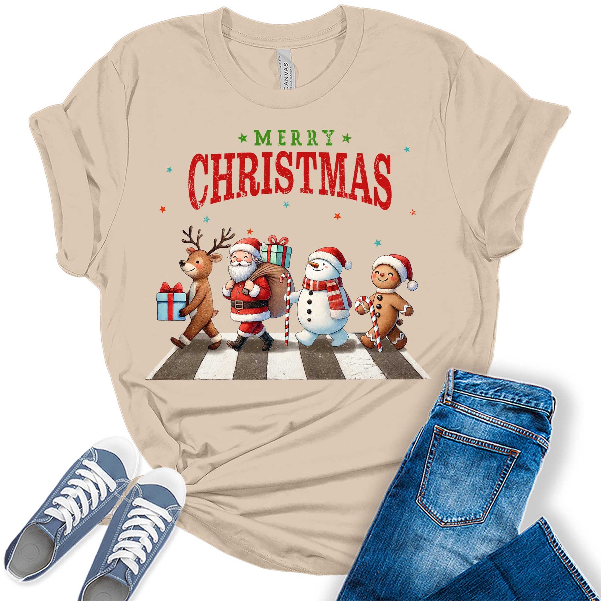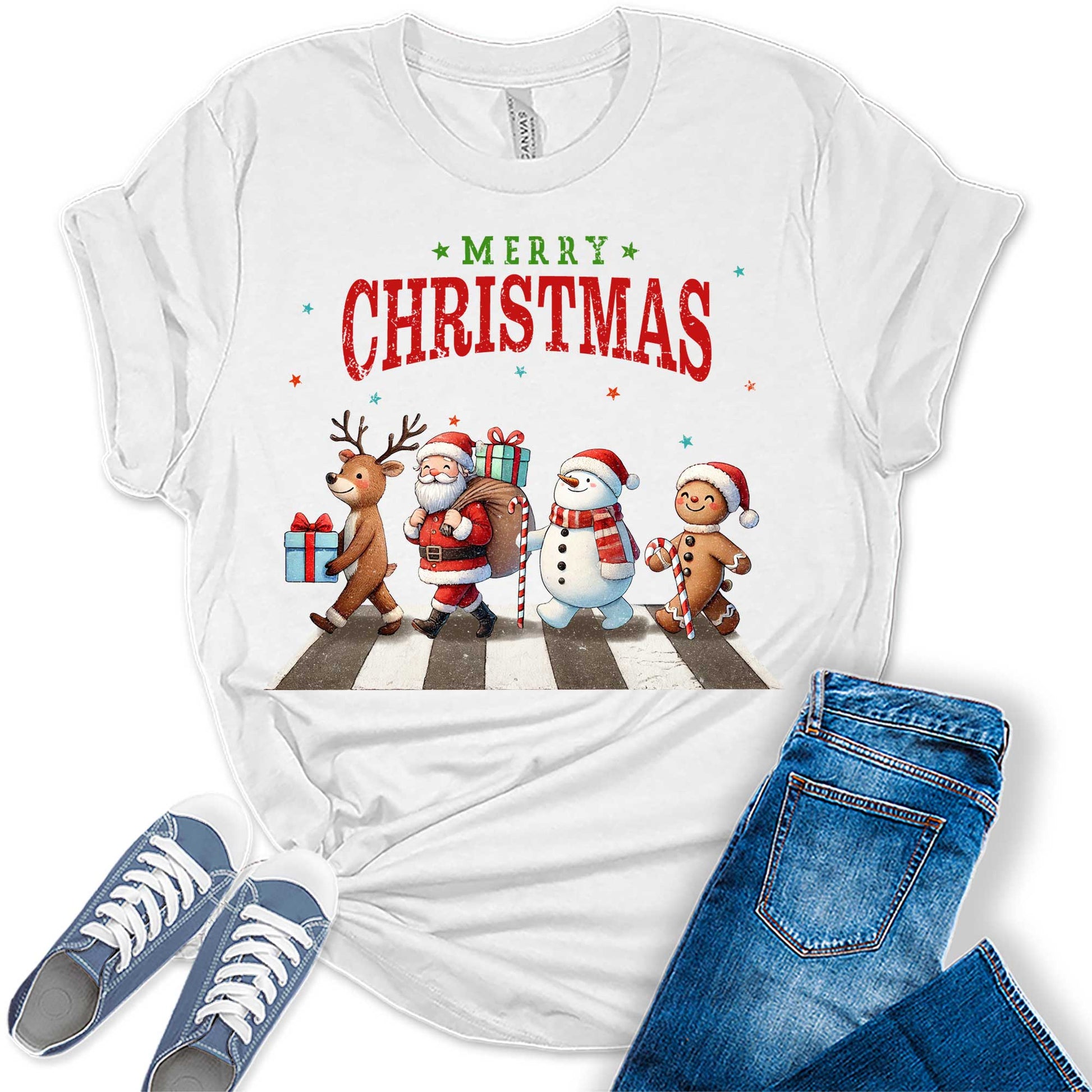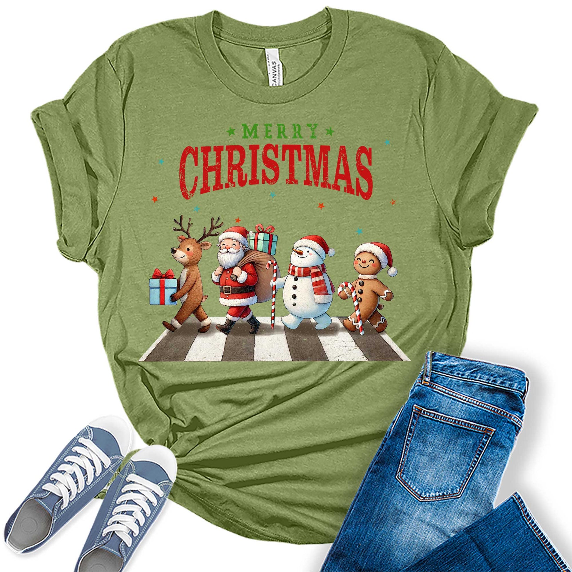 Women's Merry Christmas Shirt Festive Holiday Letter Print Graphic Tees