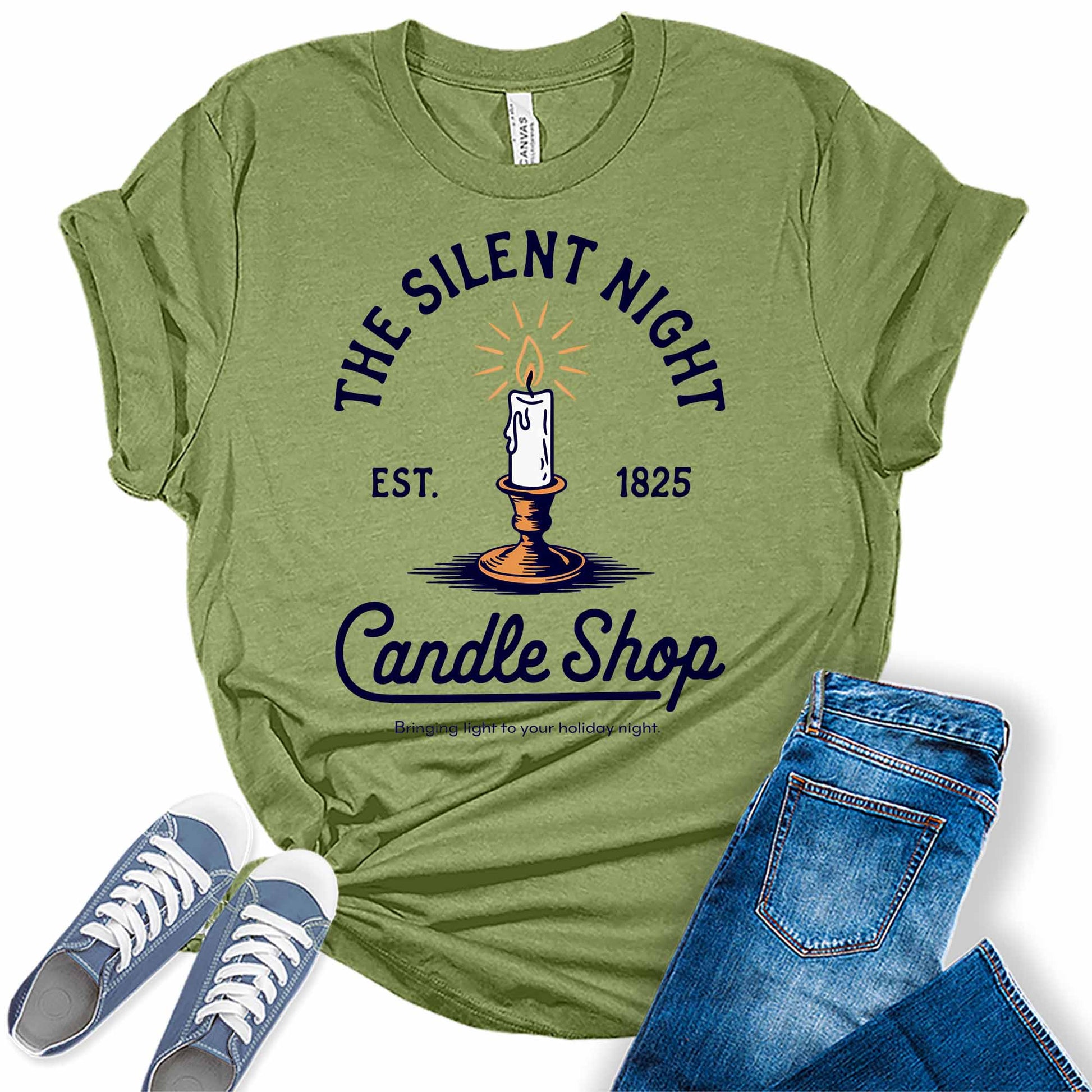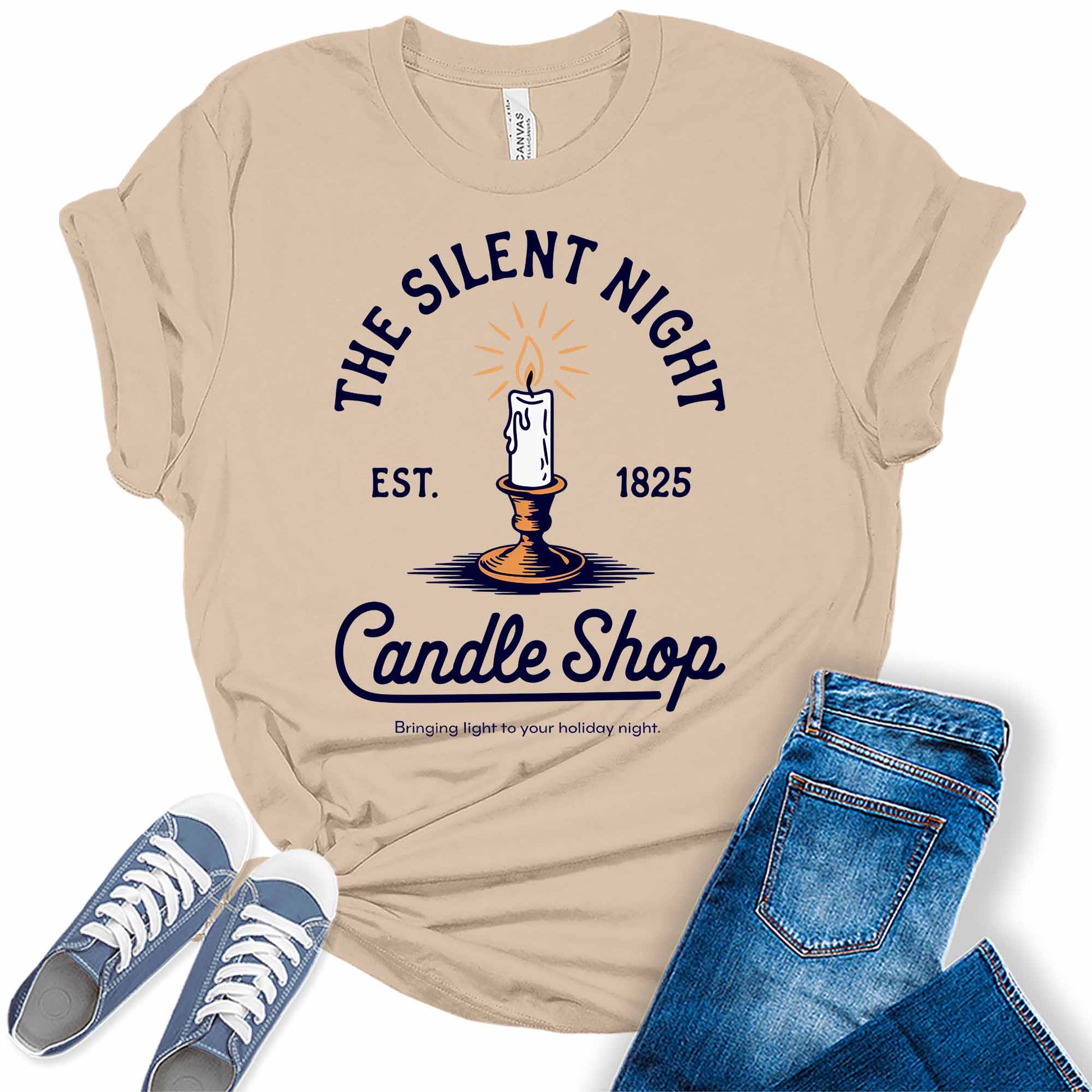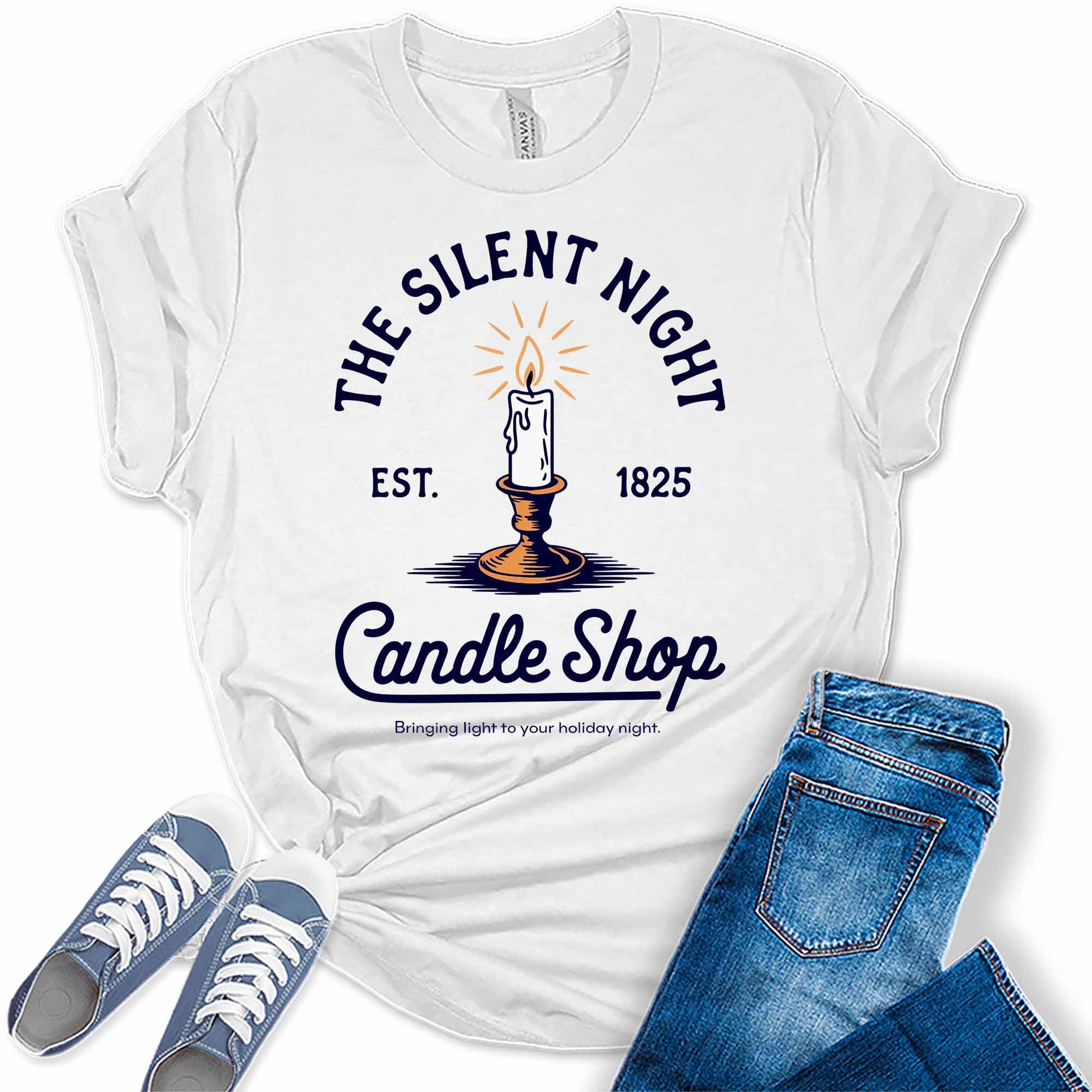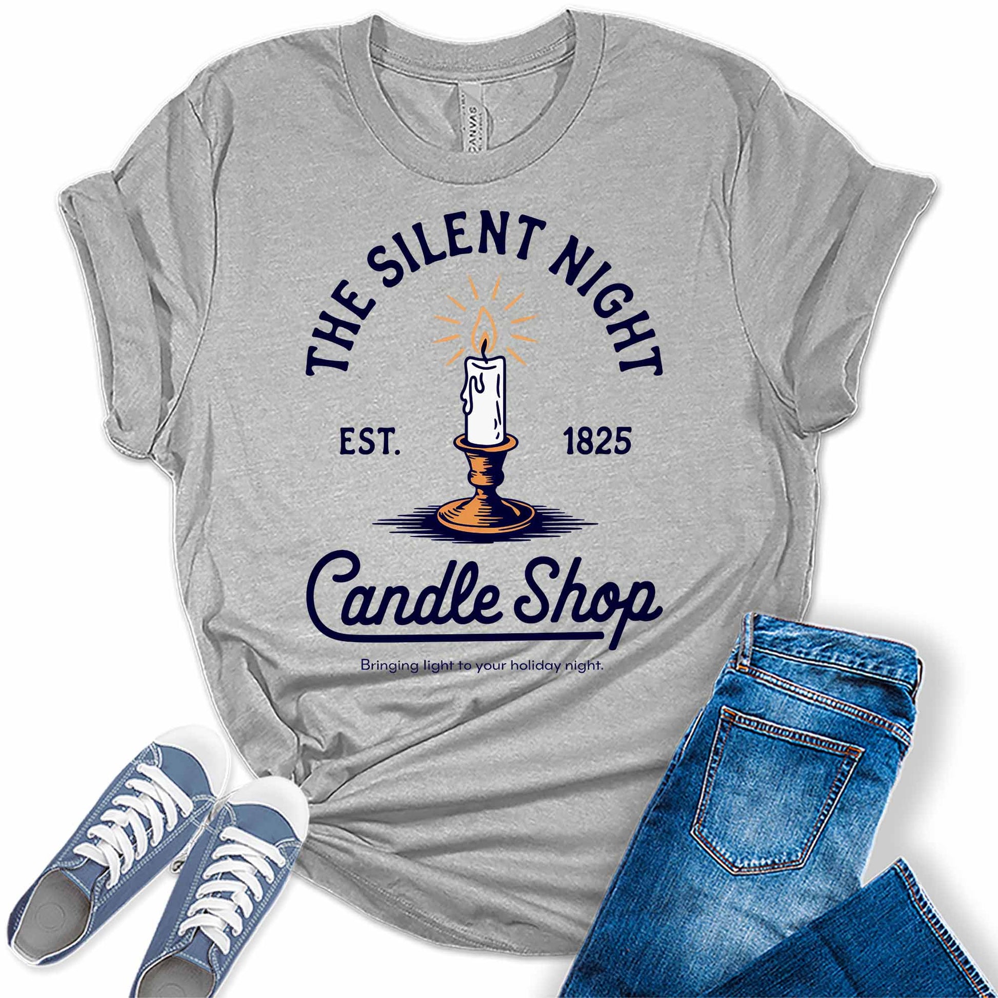 Women's Silent Night Candle Shop Christmas Graphic Tees