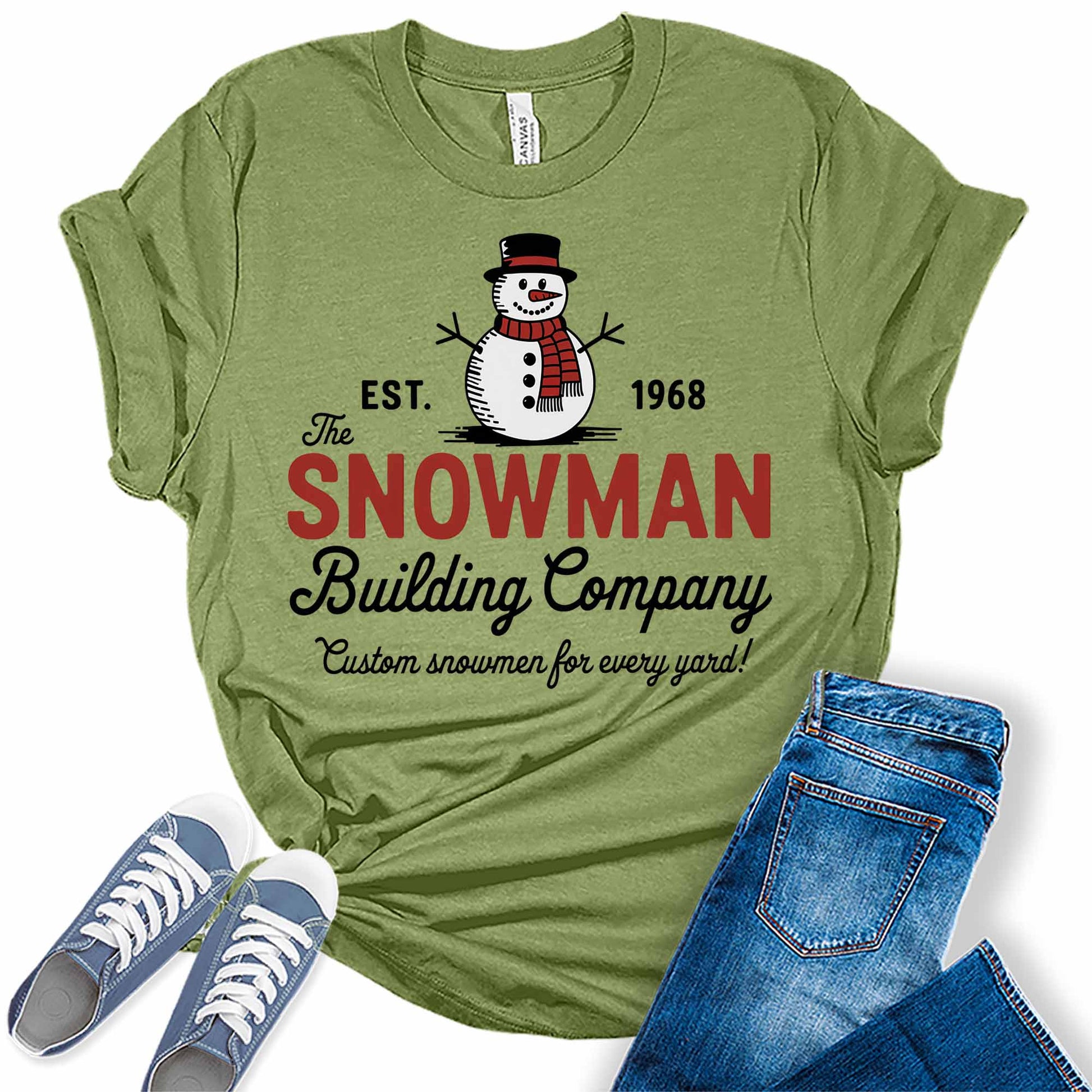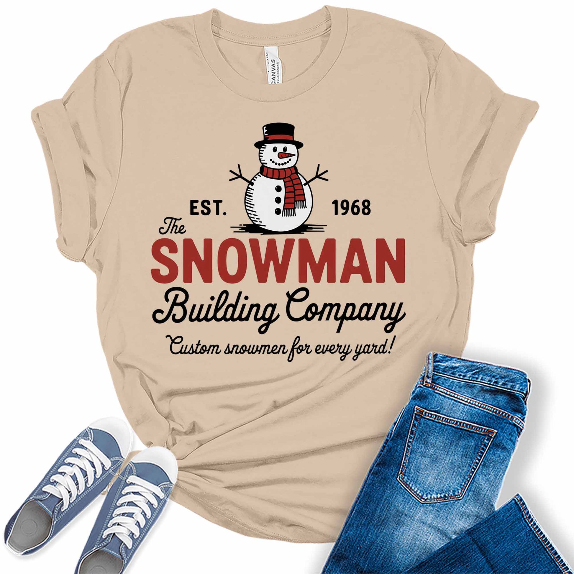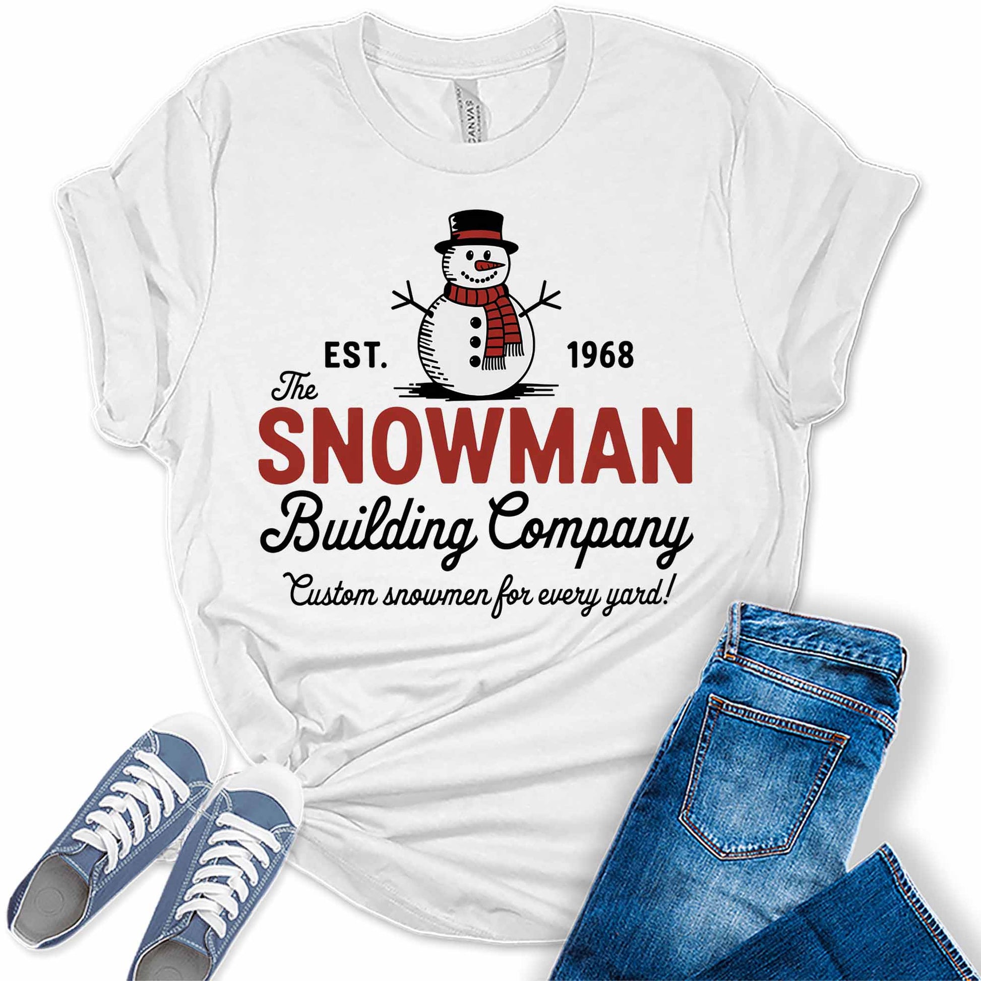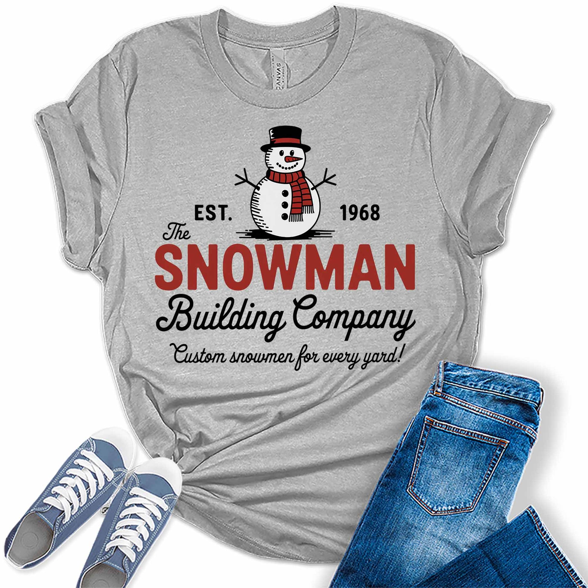 Women's Snowman EST. 1968 Building Company Christmas Graphic Tees