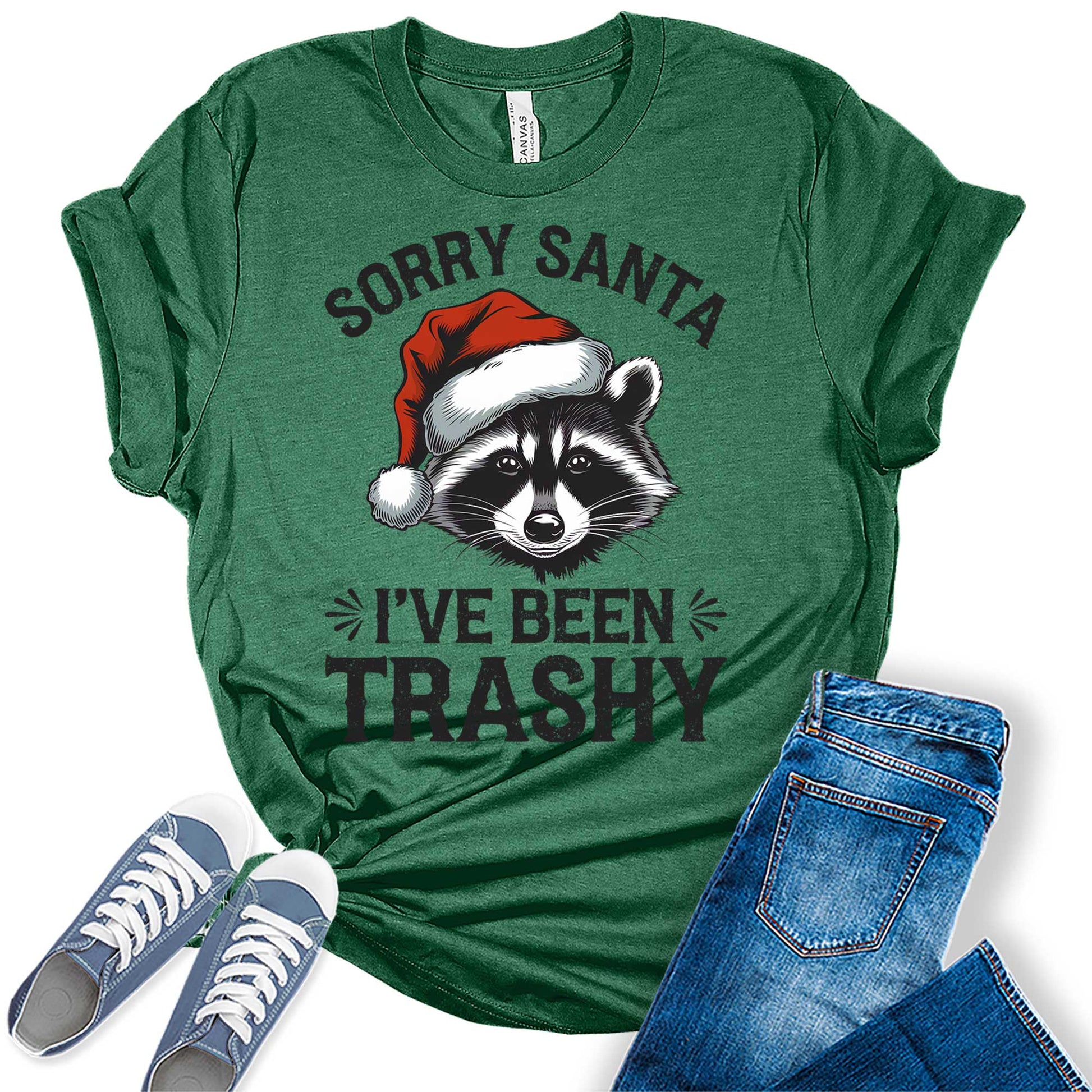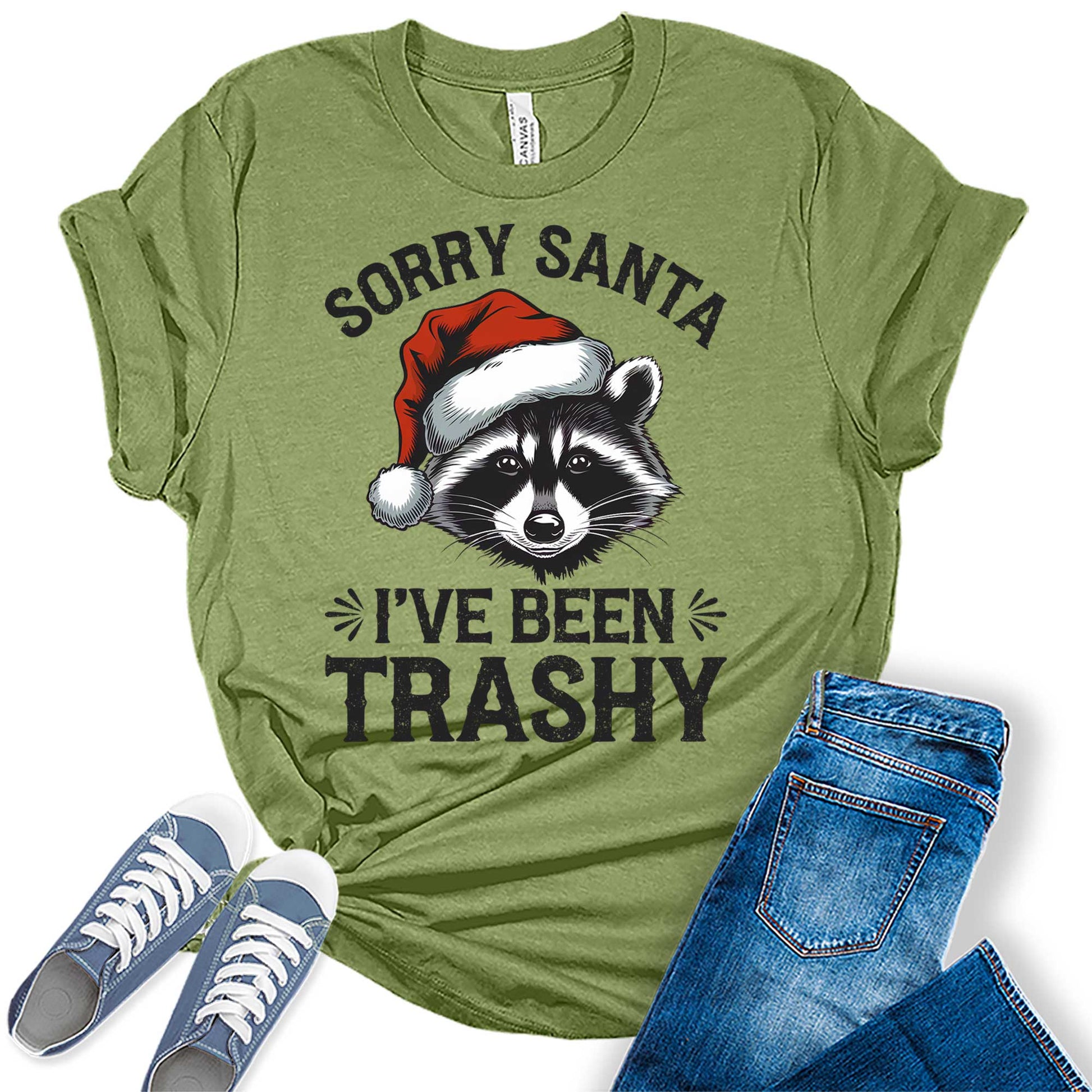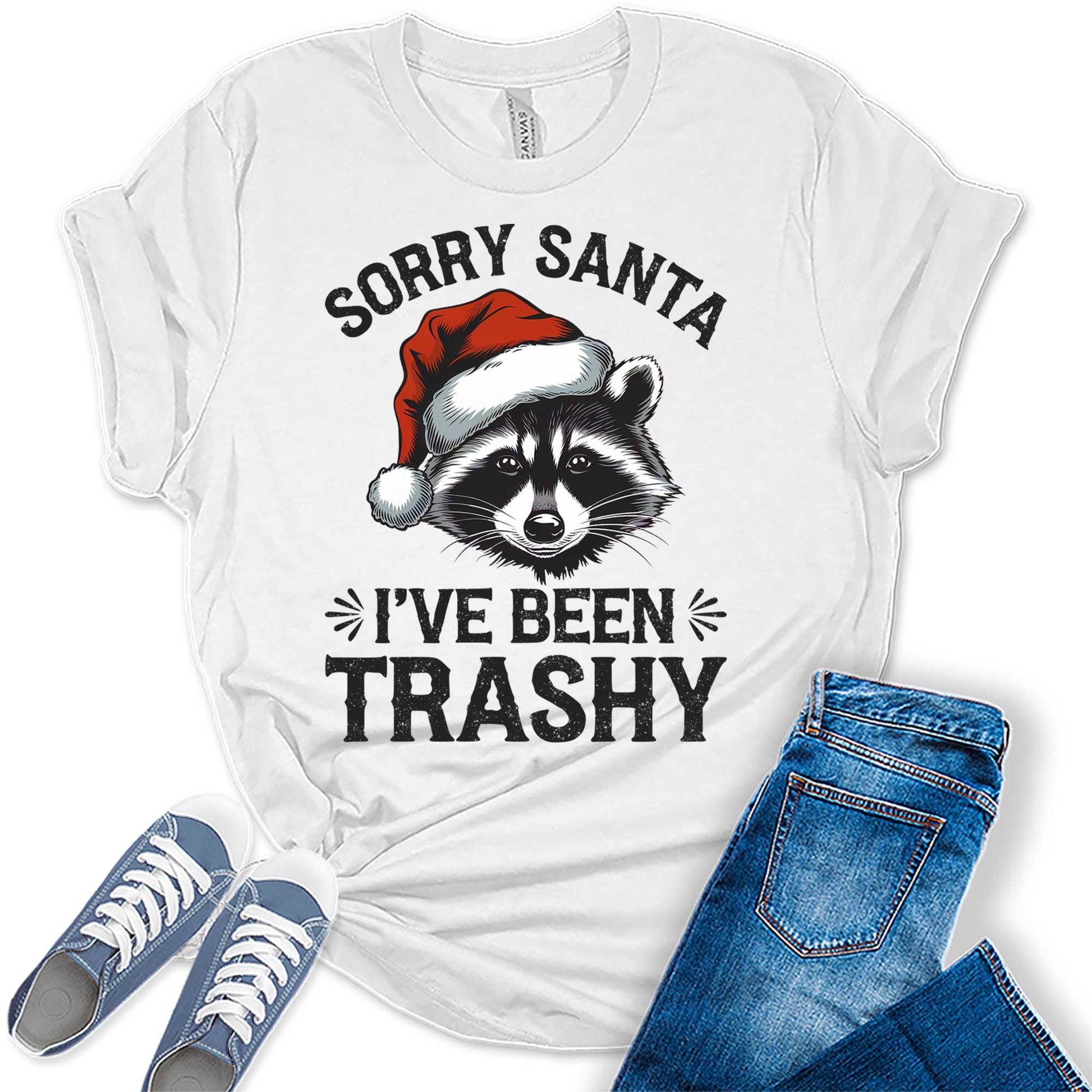 Women's Sorry Santa I've Been Trashy Christmas Raccoon Graphic Tees