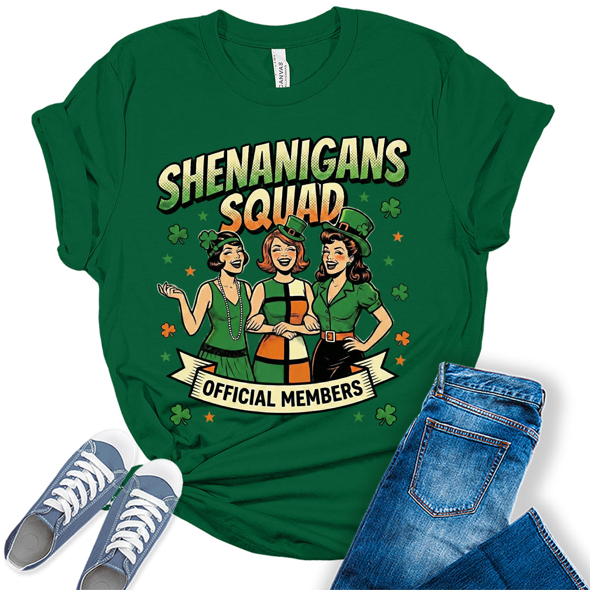 Women's St. Patrick's Day Shirts Cute Shenanigans Squad Graphic Tees Bella Plus Sized Tops