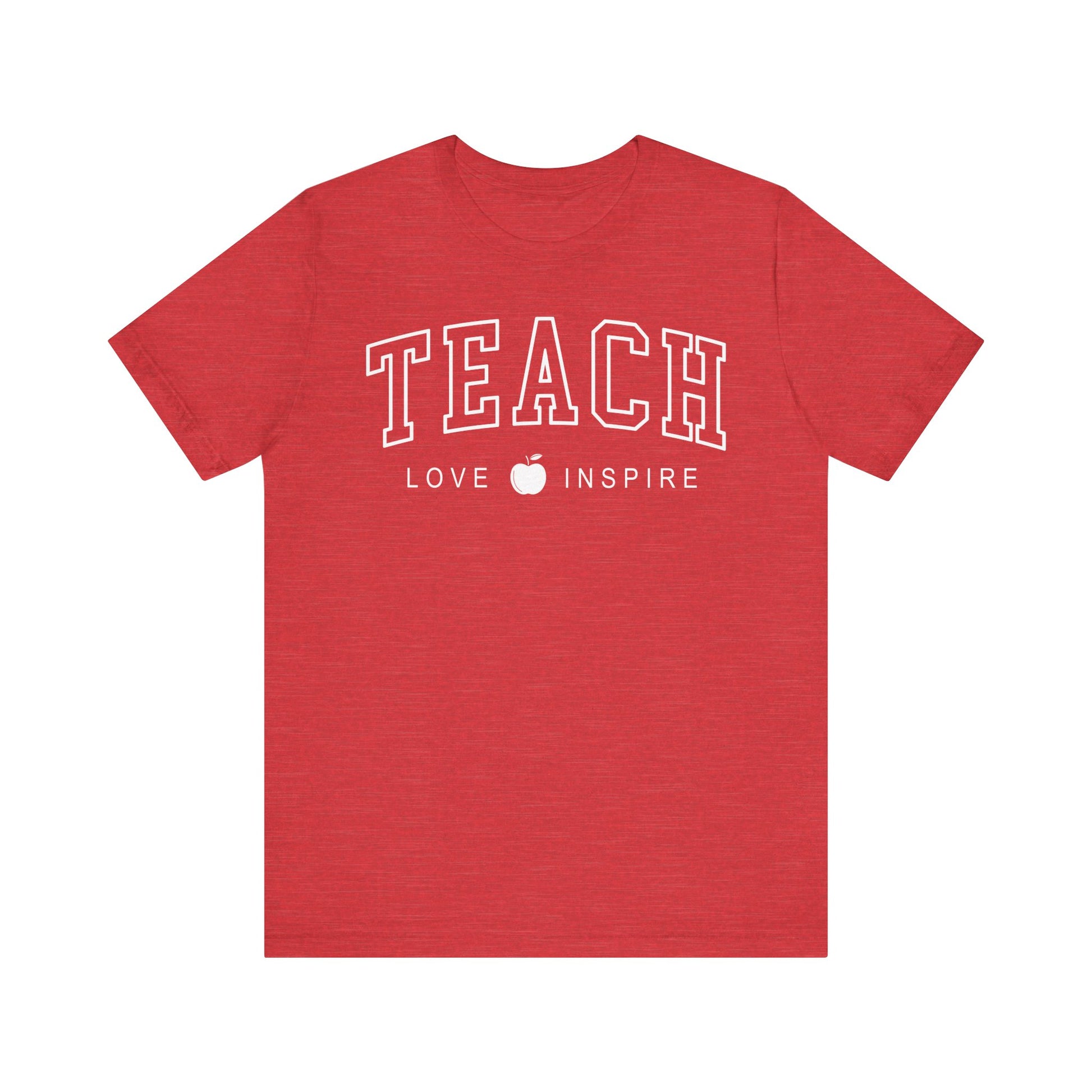 Womens Teacher Shirts Teach Love Inspire Cute Letter Print Tshirts Bella Graphic Tees Short Sleeve Casual Teaching Clothes - PF2